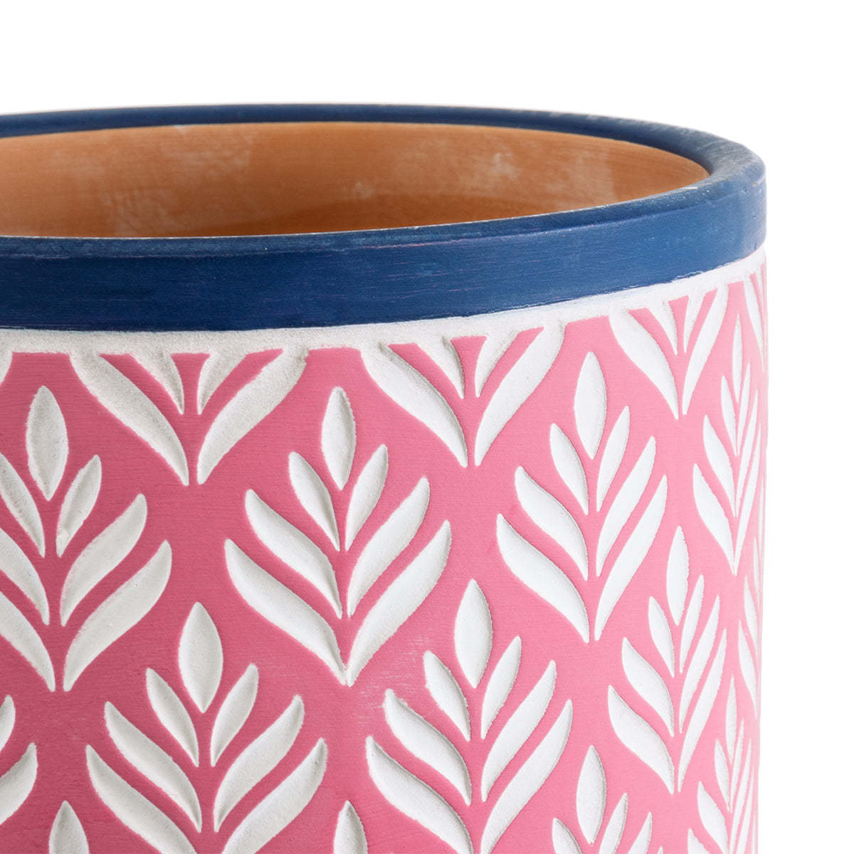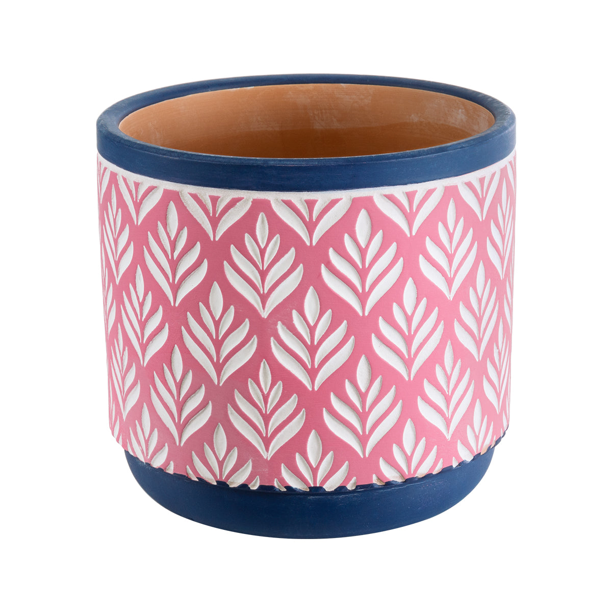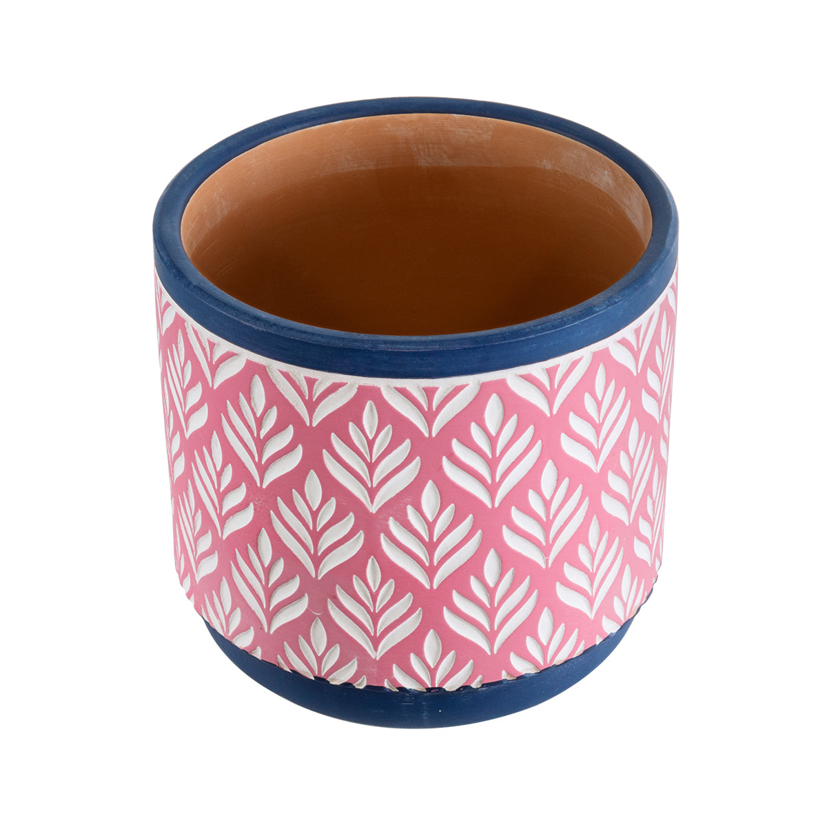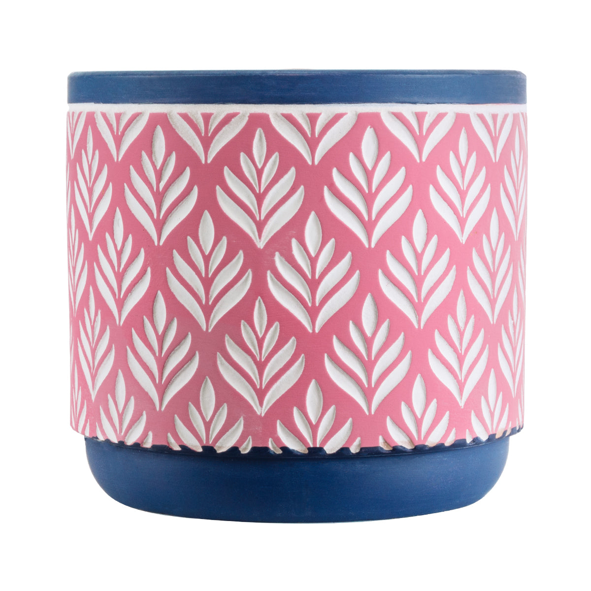 BOMBAY 20521 Διακοσμητικό Κεραμικό Κασπώ Γλάστρα - Flower Pot Ροζ με Λευκό και Μπλε Φ14.5 x Υ13cm