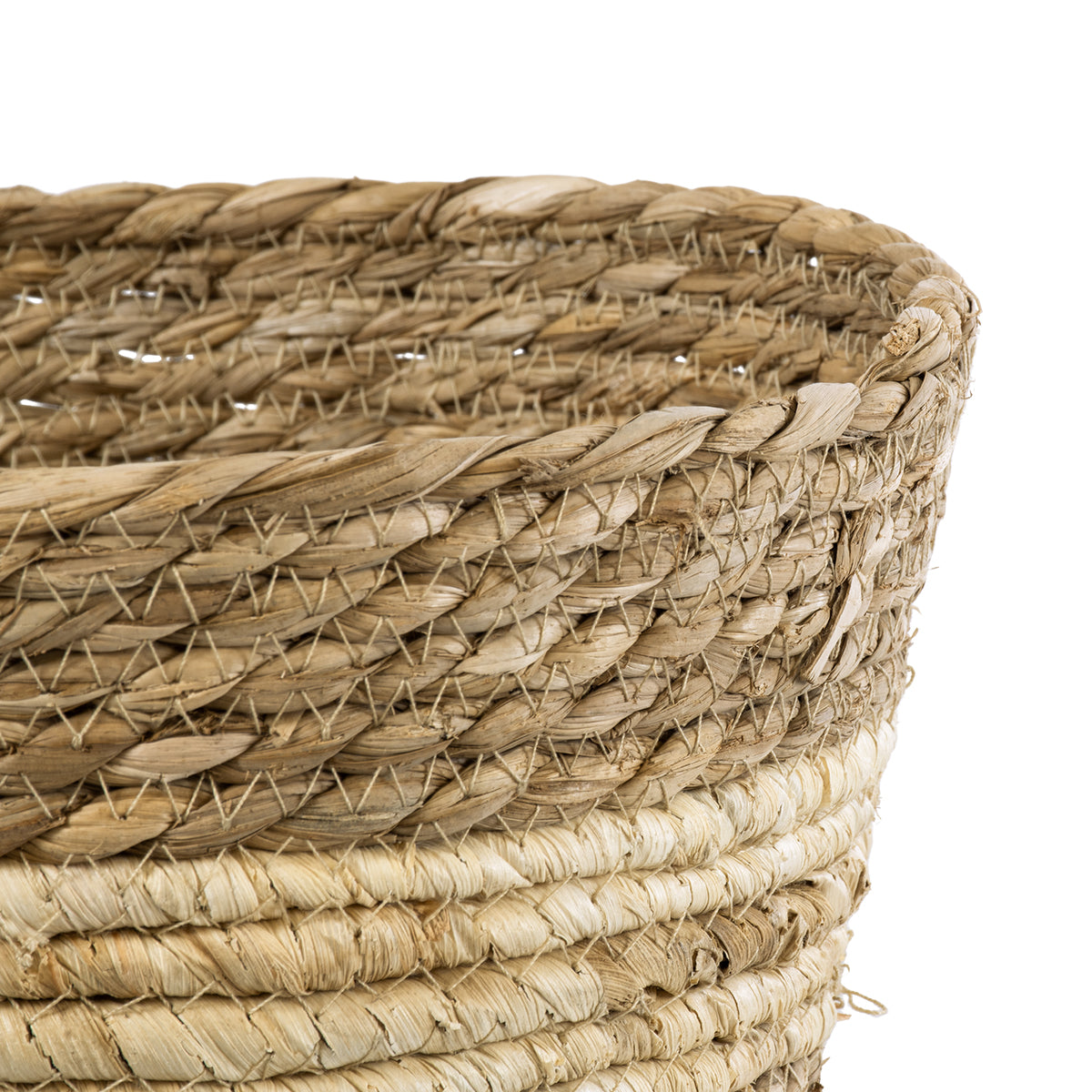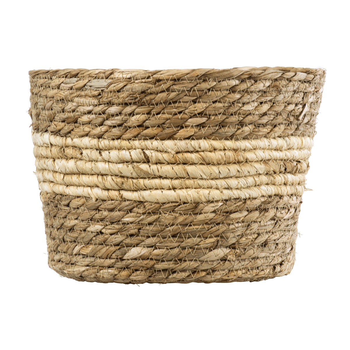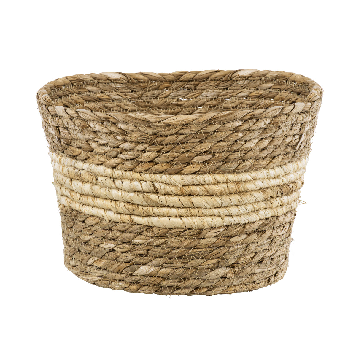 KYTHIRA 20273 Διακοσμητικό Πλεκτό Καλάθι - Κασπώ Γλάστρα - Flower Pot Μπεζ με Λευκό Φ22cm x Υ15cm
