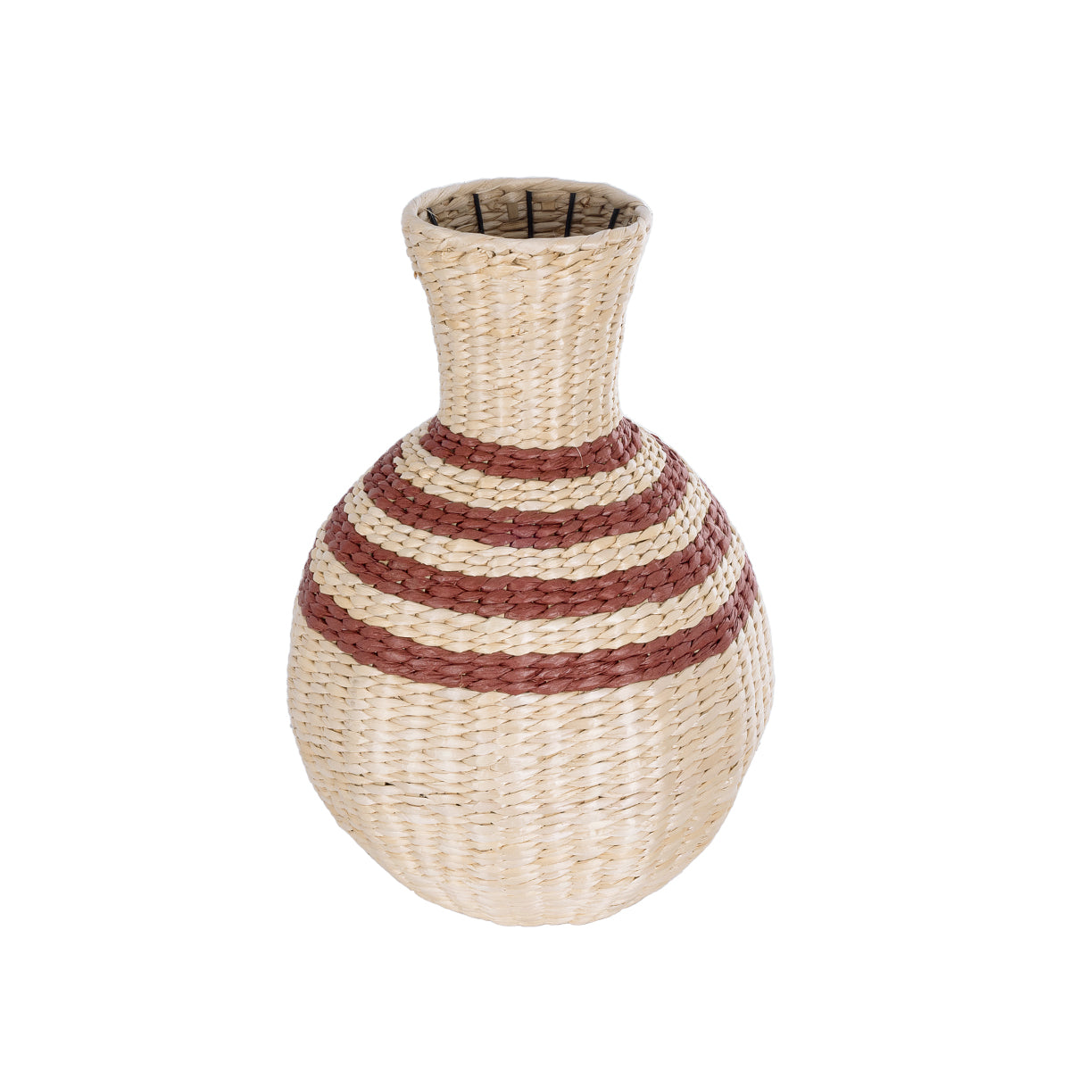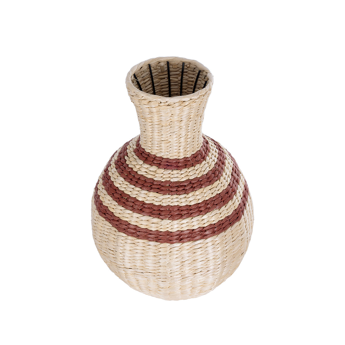 PALERMO 21231 Διακοσμητικό Πλεκτό Καλάθι - Κασπώ Γλάστρα - Flower Pot Μπεζ με Μπορντό Φ38cm x Υ50cm