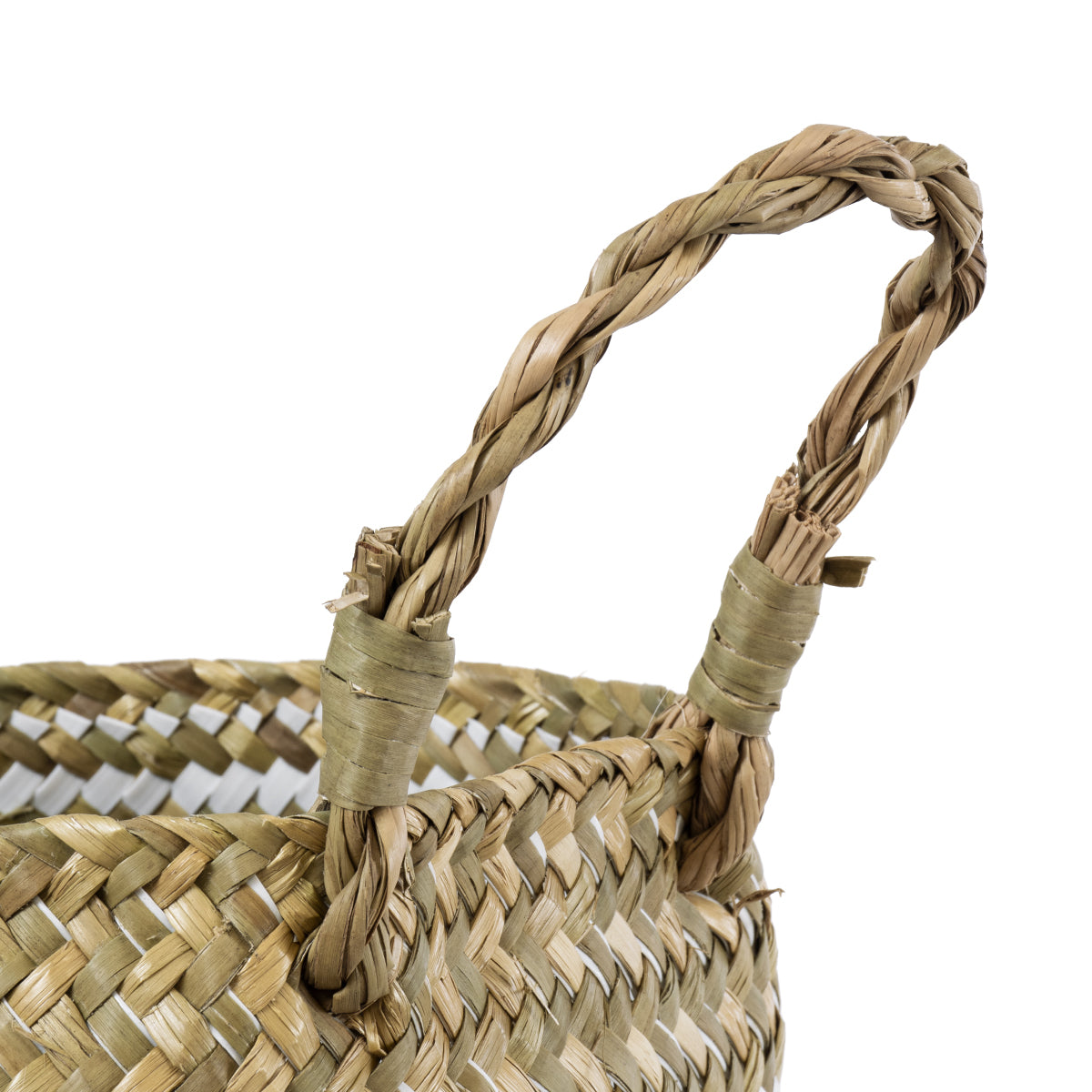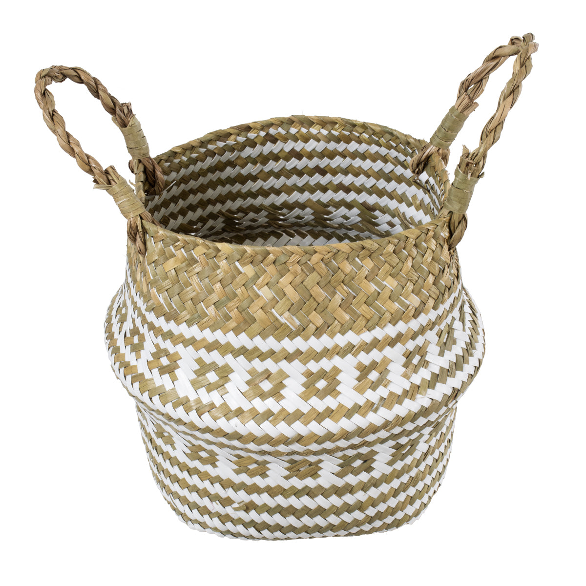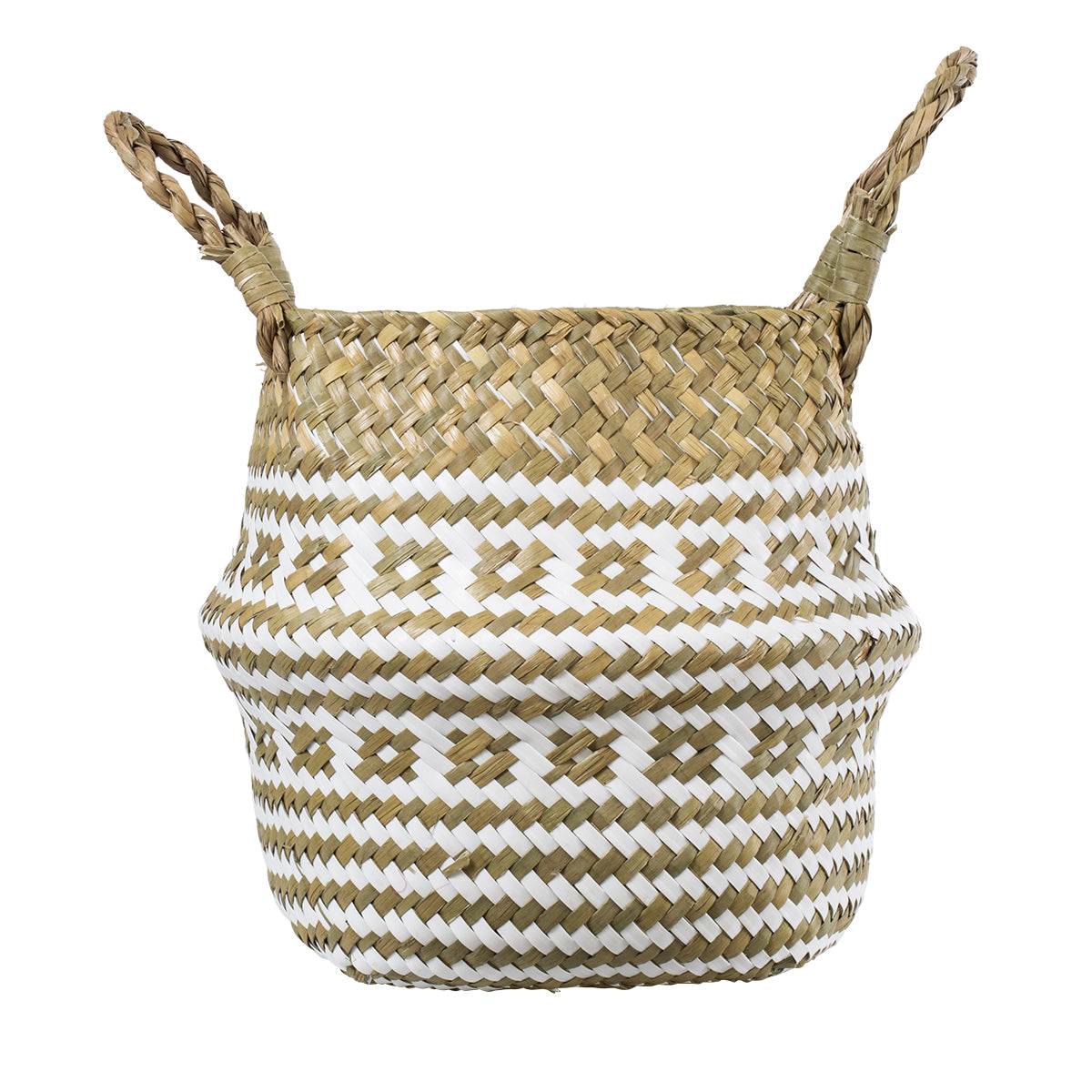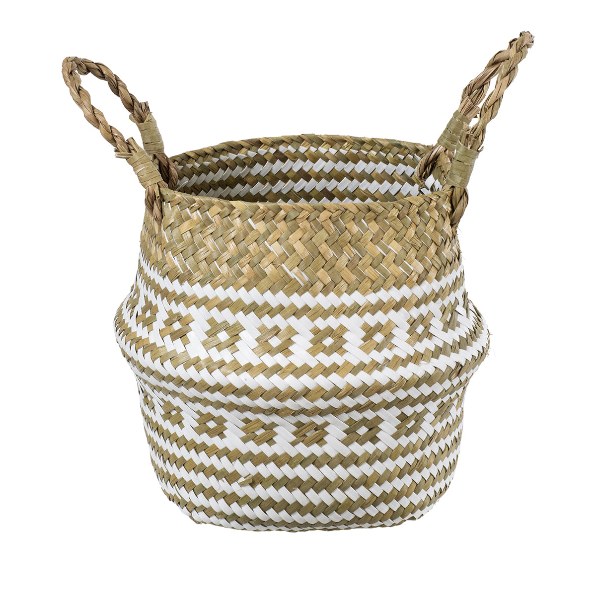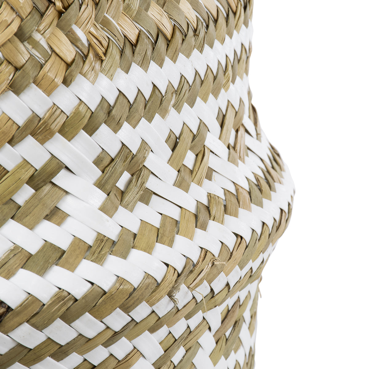 SYMI 20338 Διακοσμητικό Ψάθινο Καλάθι - Κασπώ Γλάστρα - Flower Pot Μπεζ με Λευκό Φ18cm x Υ20cm