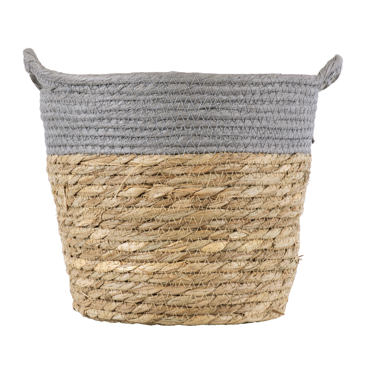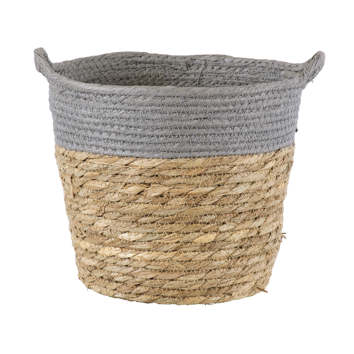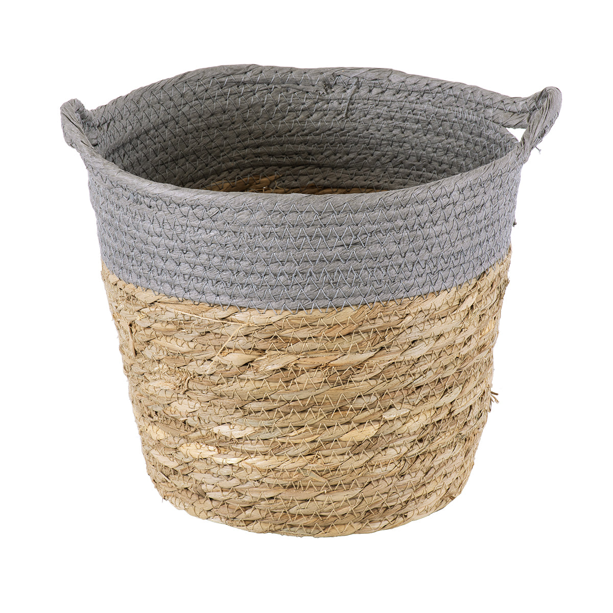 SYROS 20281 Διακοσμητικό Πλεκτό Καλάθι - Κασπώ Γλάστρα - Flower Pot Μπεζ με Γκρι Φ20cm x Υ20cm