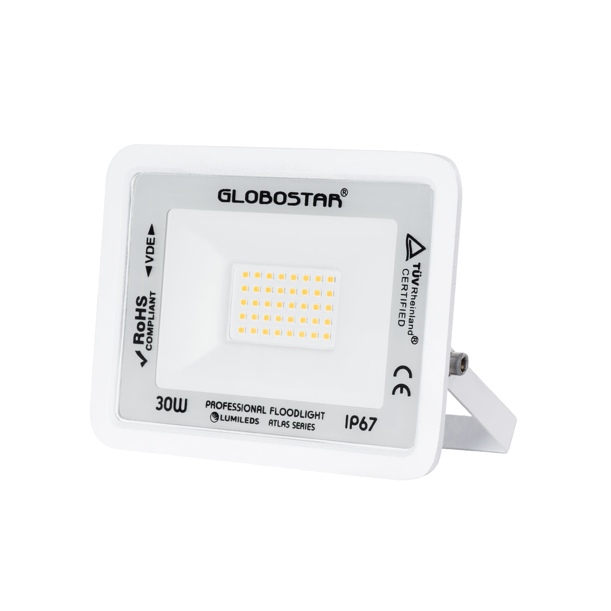 ATLAS 61415 Επαγγελματικός Προβολέας LED 30W 3450lm 120° AC 220-240V - Αδιάβροχος IP67 - Μ16 x Π2.5 x Υ12.5cm - Λευκό - Θερμό Λευκό 2700K - LUMILEDS Chips - TÜV Rheinland Certified