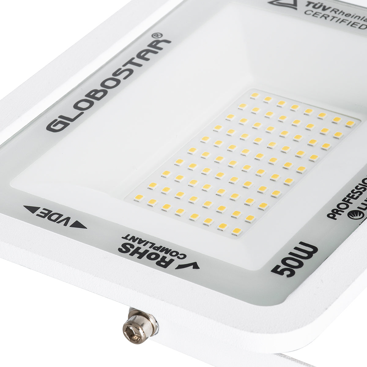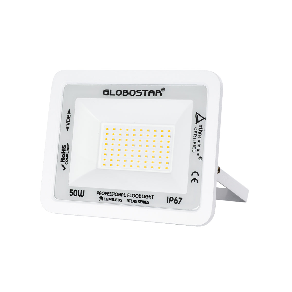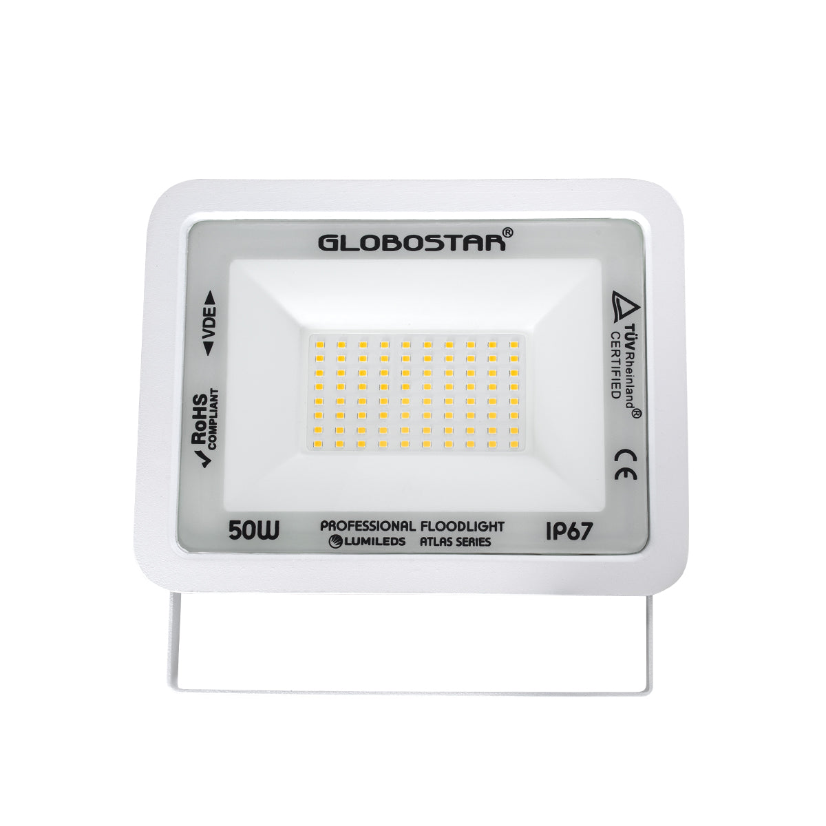 ATLAS 61421 Επαγγελματικός Προβολέας LED 50W 5750lm 120° AC 220-240V - Αδιάβροχος IP67 - Μ21 x Π3.5 x Υ16cm - Λευκό - Θερμό Λευκό 2700K - LUMILEDS Chips - TÜV Rheinland Certified