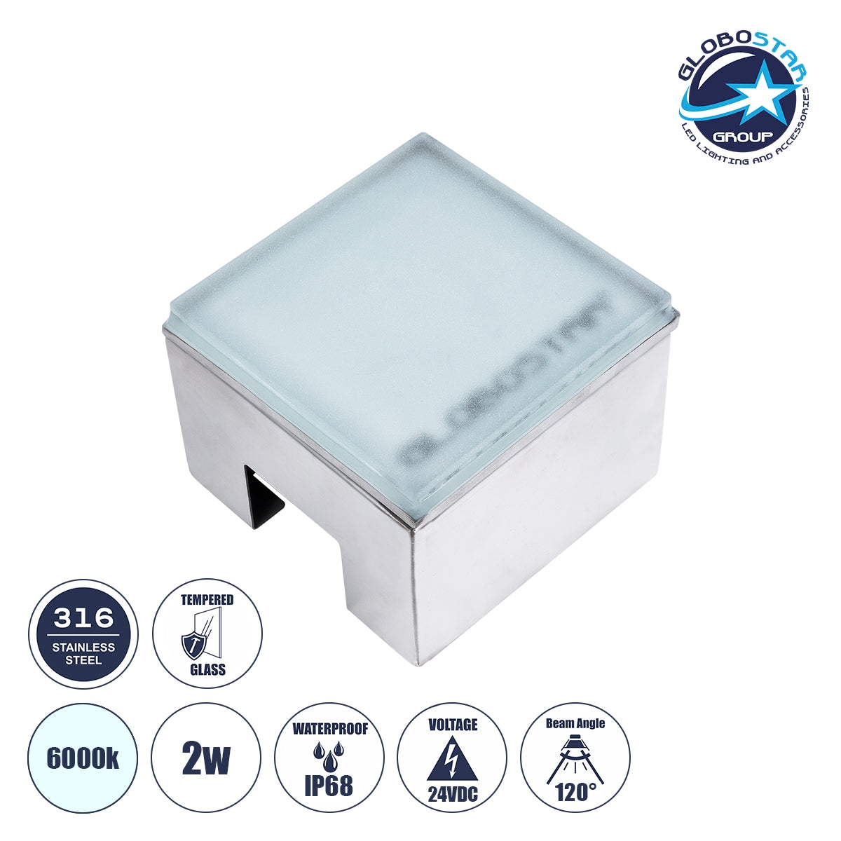 CYBOLITHOS 60366 Χωνευτό Φωτιστικό Σποτ Δαπέδου LED 2W 270lm 120° DC 24V Αδιάβροχο IP68 IK06 Μ10 x Π10 x Υ8cm 6000K Dimmable - Tempered Γαλακτερό Γυαλί & Ανοξείδωτο Ατσάλι - Bridgelux Chip