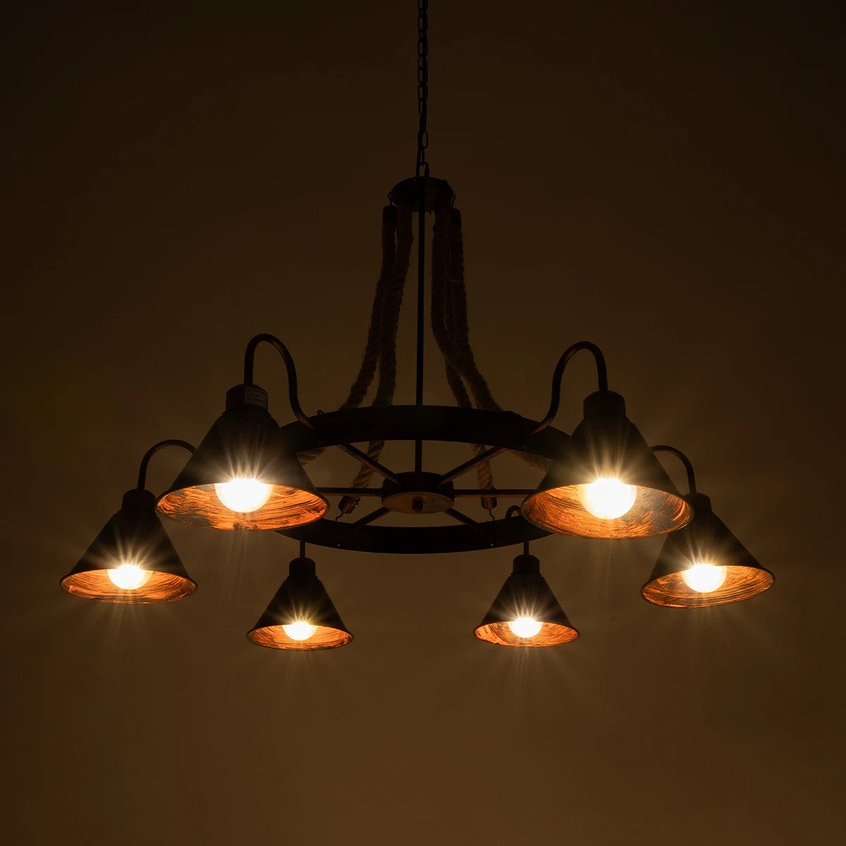 • Τεχνοτροπία Φωτιστικού: Μεταλλικό Πολυέλαιος - Μπεζ Σχοινί