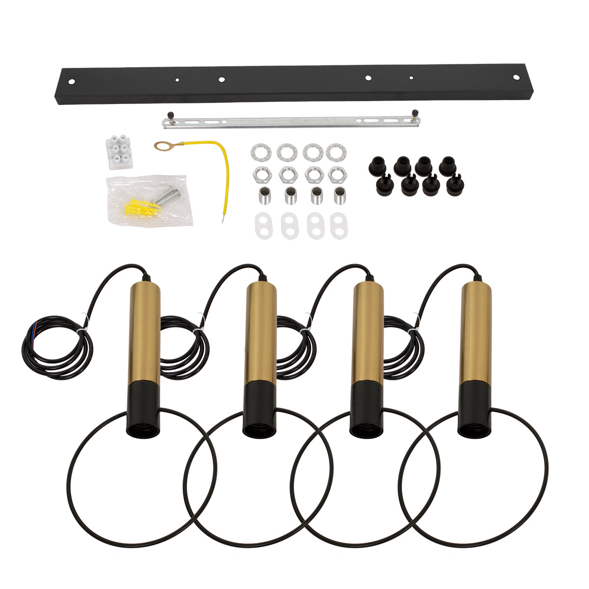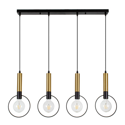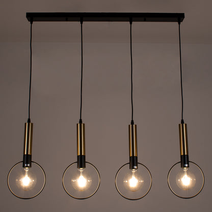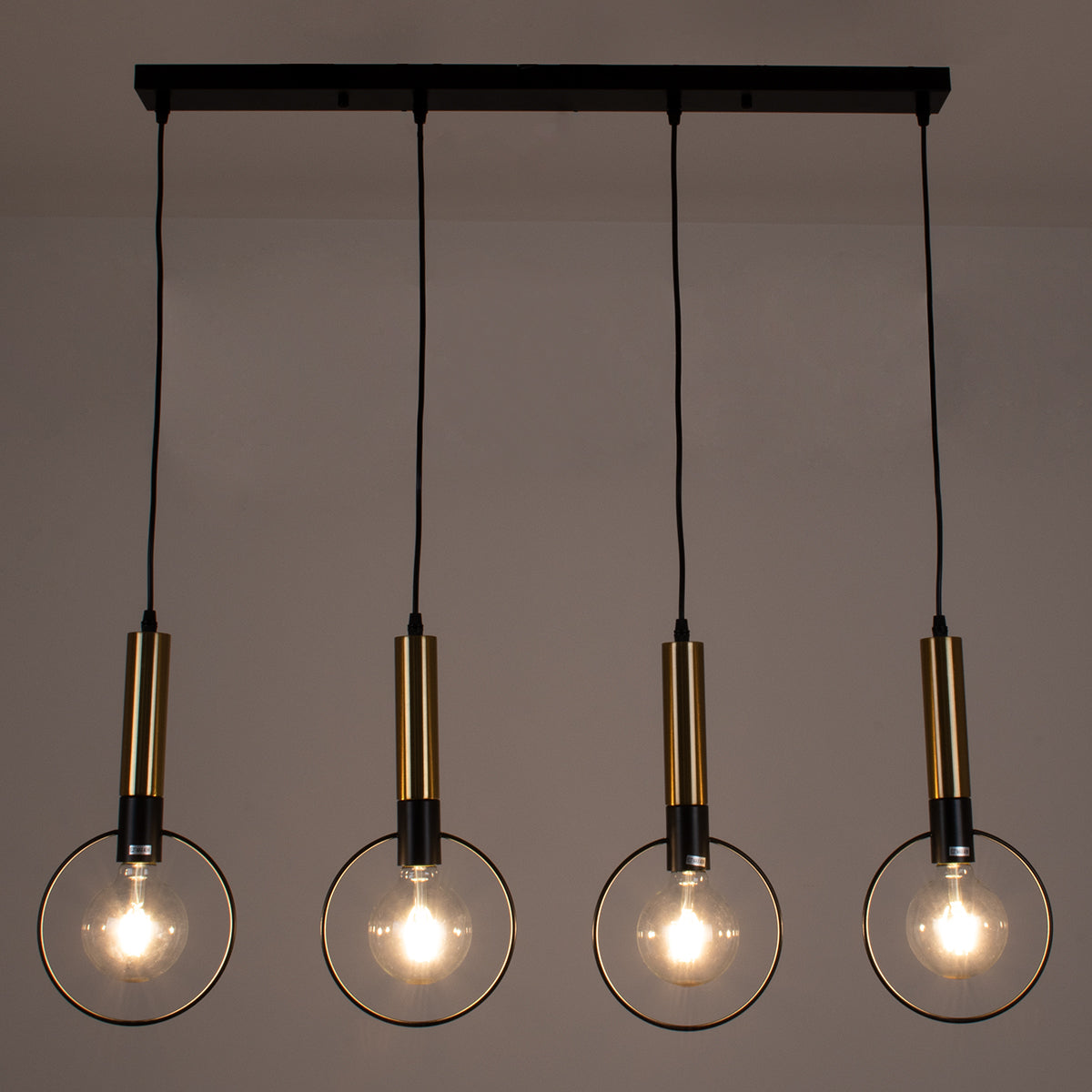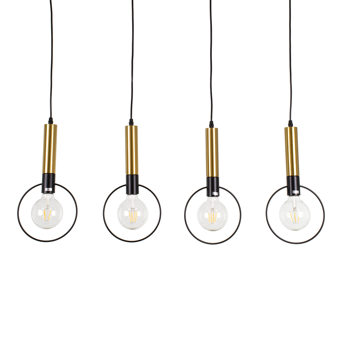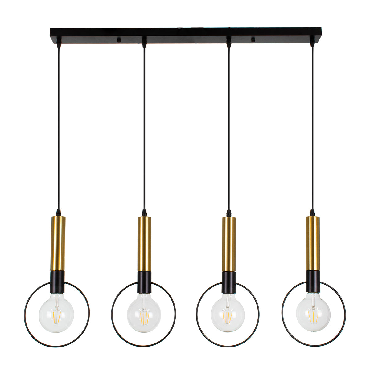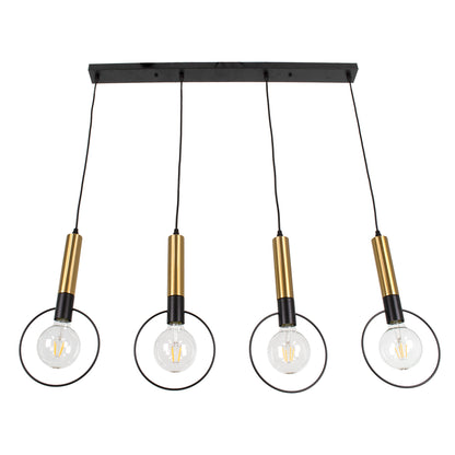 OLVERO 00775 Μοντέρνο Κρεμαστό Φωτιστικό Οροφής Πολύφωτο 4 x E27 Μαύρο - Χρυσό Μεταλλικό Πλέγμα Μ90 x Π18 x Y130cm