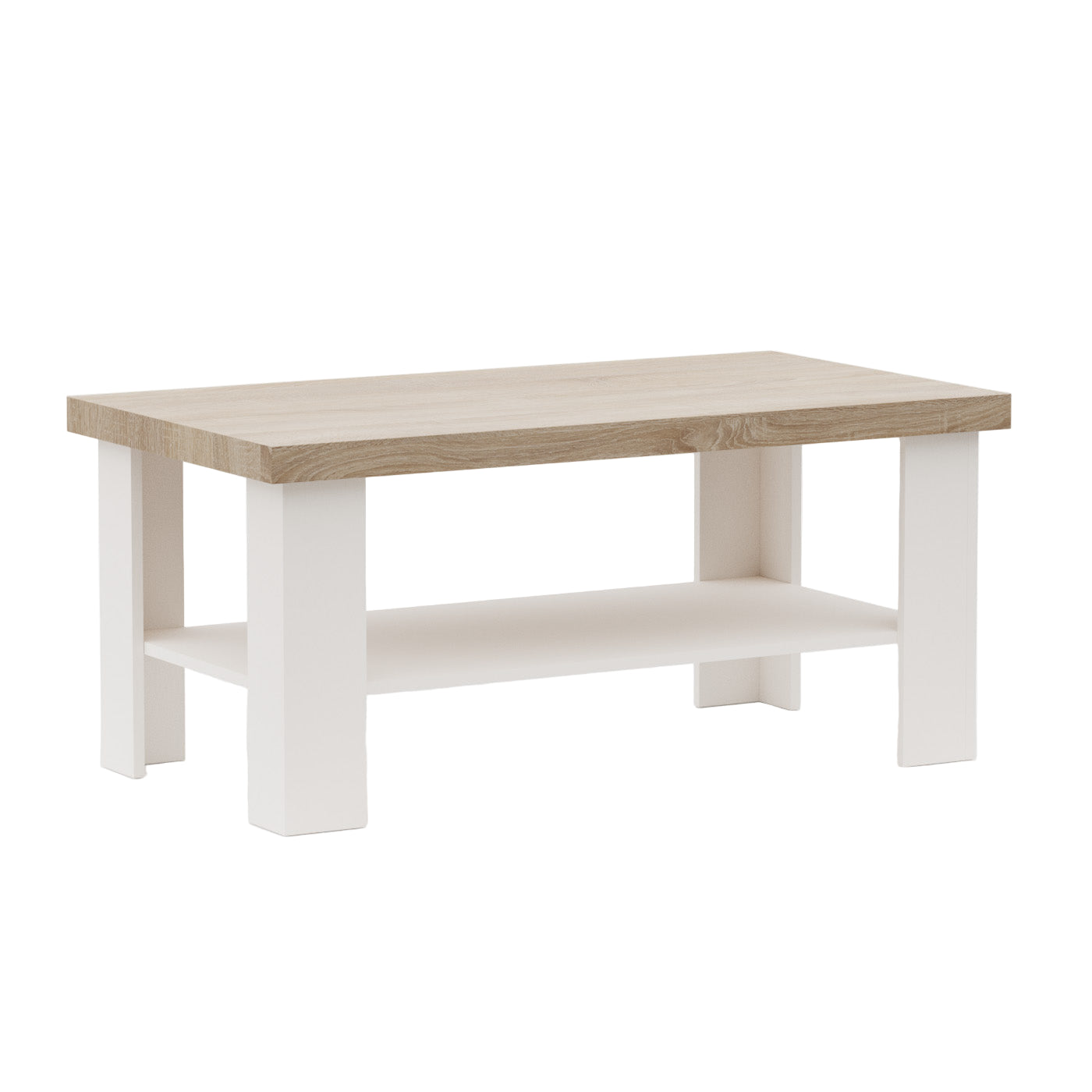 Τραπέζι Σαλονιού VERNE σε διχρωμία λευκό με φυσικός δρυς που προσφέρει μια ανάλαφρη και ζεστή αισθητική με διαστάσεις 110x60x46.4 με πρακτικό σχεδιασμό και στιβαρή στήριξη.